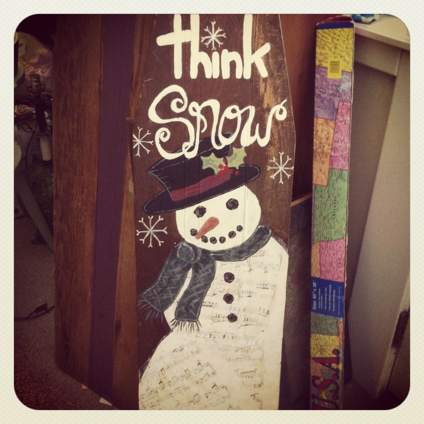 Finally, today, I got up and managed my time and had nothing else to do except whatever I wanted to do. And I was actually determined enough to get stuff done! I got out of bed and found a corner to get some of my freelance writing done this morning, which will help me not be so frantic come Wednesday night when I’m trying to finish it up. I also made a dent in some of the prep work for making bags for the shows, and worked on a couple of vintage ironing boards I’m re-purposing into holiday decor.