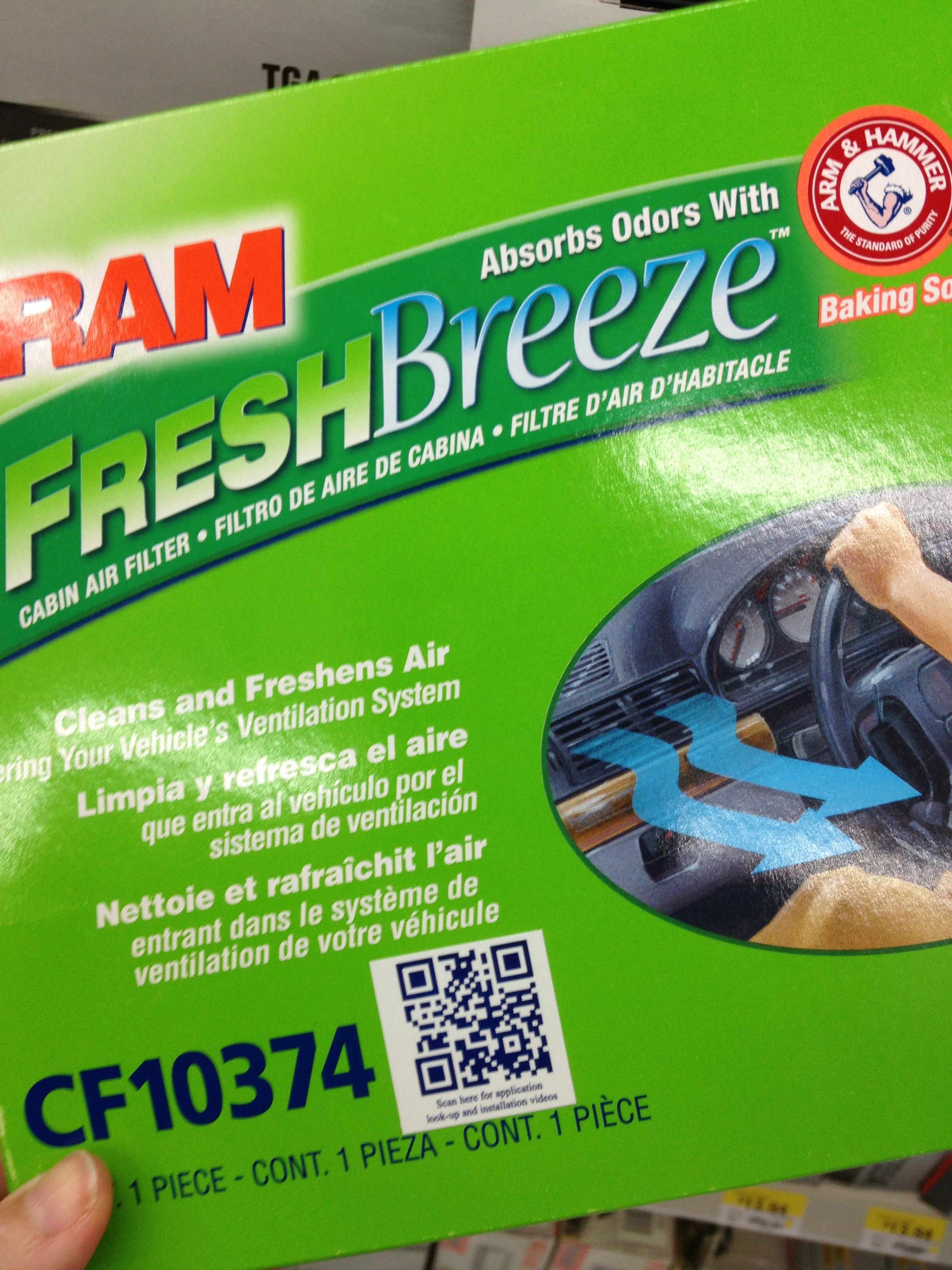So I found these FRAM Fresh Breeze cabin filters, and they claim to clean the air 6 times better than standard cabin air filters because they use Arm & Hammer baking soda. Just like grandma used to put in the fridge. If grandma used it, it’s gotta be good.