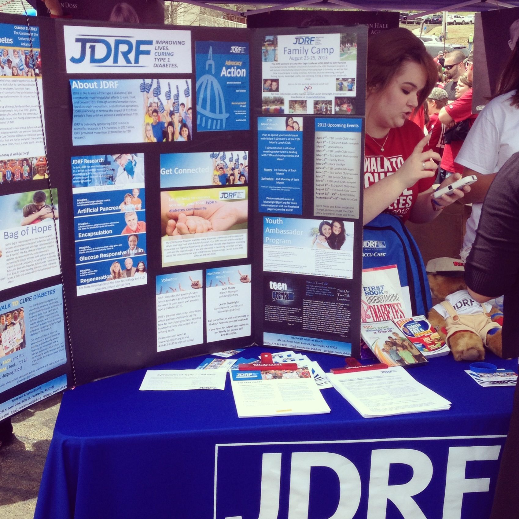 I don’t think we’ve attended this event before, even though I’d heard of it. I knew it was kid-centered, and there were autograph sessions with ball players other Razorback personalities and such, but I had no idea how much was going on at this event. We had heard that a local news station was taking donations of non-perishable food, so I loaded up a tote bag with some cans of beans that were never going to be eaten at my house (much to my chagrin…) and a couple of cans of tuna (same as the beans…) and we headed out.