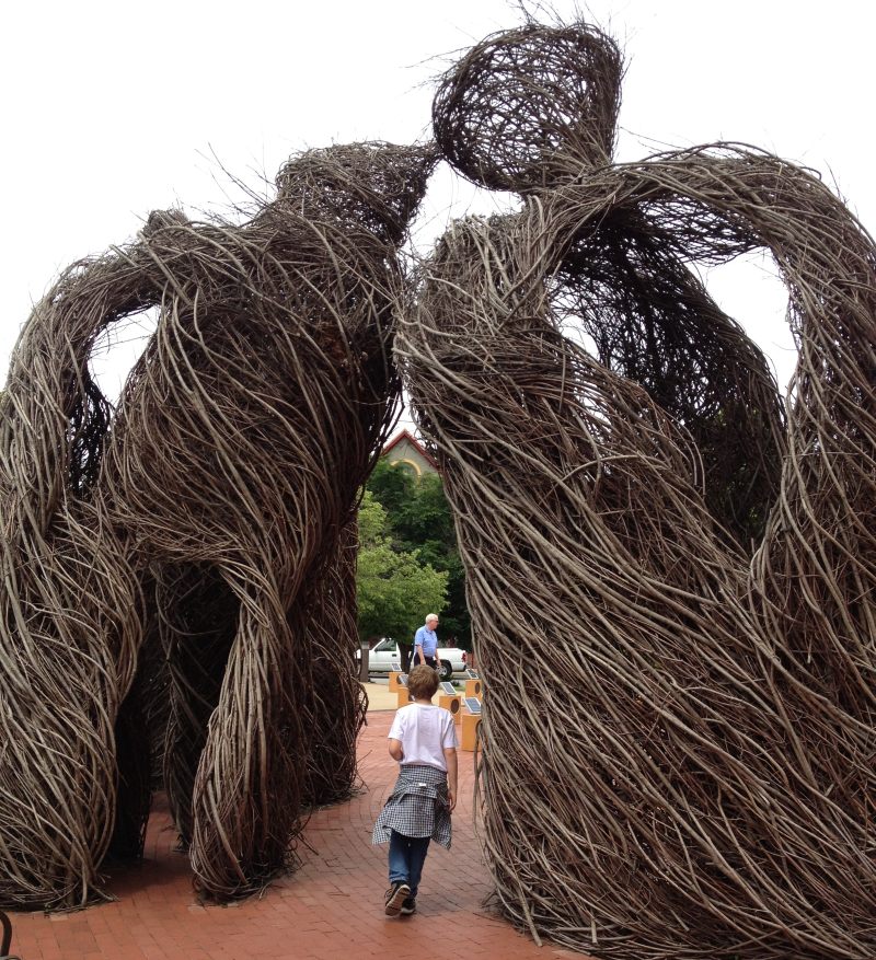 In addition to the fascinating production, Walton Arts Center is featuring some fantastic public art during the annual Artosphere Festival. The Herd is making it’s way through the lobby… Sun Boxes are singing on the plaza (here’s a video!) and I always love to see the Stickworks figures that I helped create for last year’s Artosphere. So much awesome in one place!