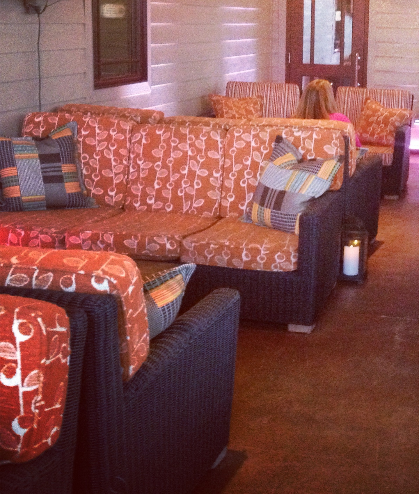 Unlike some restaurants in Northwest Arkansas, Ruth’s Chris put a roof over their patio. No sunburn in the summer, and on rainy days you could still enjoy most of the seating. Stormy, spring Arkansas weather?… maybe not. The patio is furnished with stylish but comfortable furniture, including granite-topped tables in one area, and comfy sofas put together to encourage hanging out and enjoying some conversation. The televisions that hang around the patio help provide a more casual feeling than you experience in the main dining room.