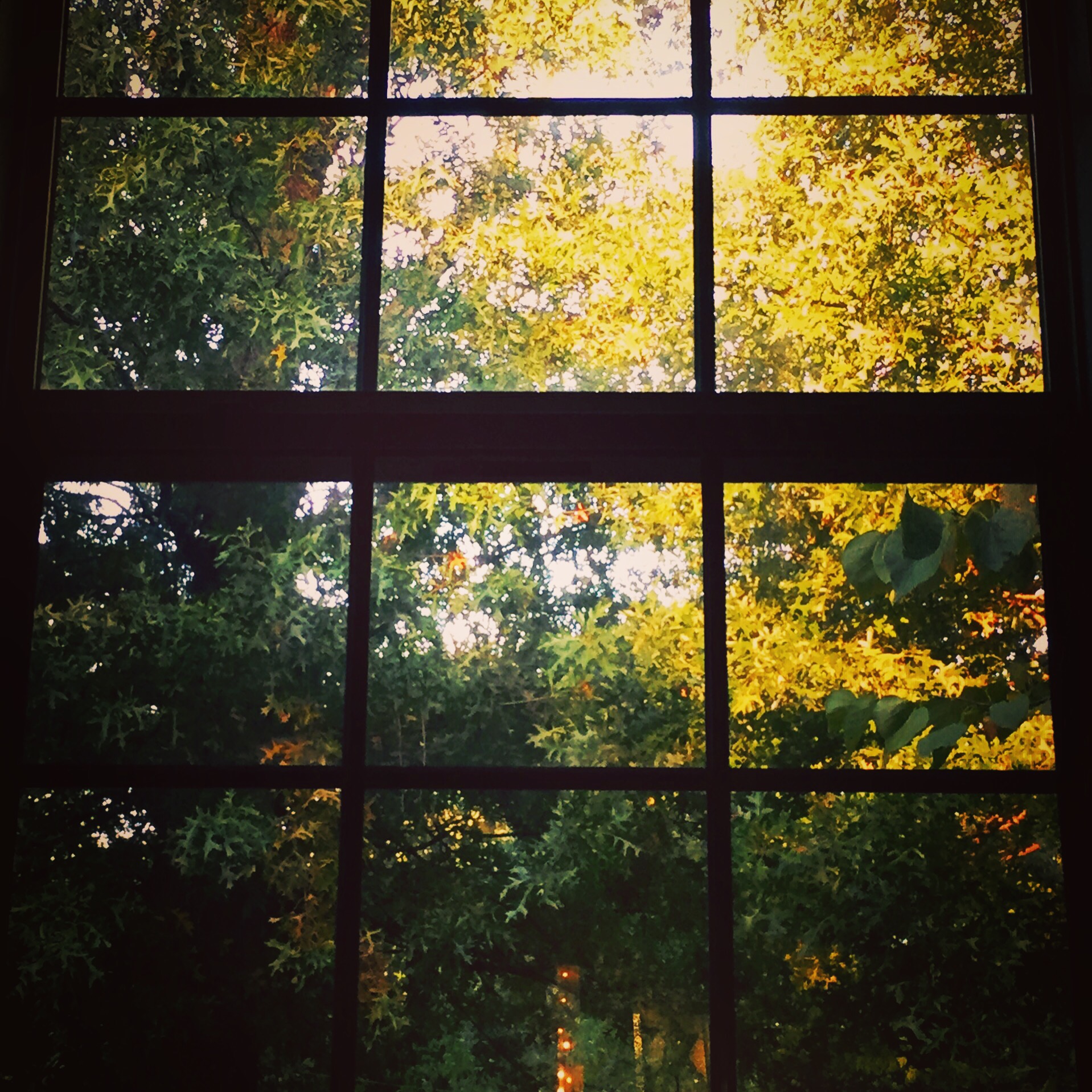 The place I go to meditate is in our sun porch. It is surrounded by windows, so there is lots of light, and a view of the giant oak trees that shade our back yard.