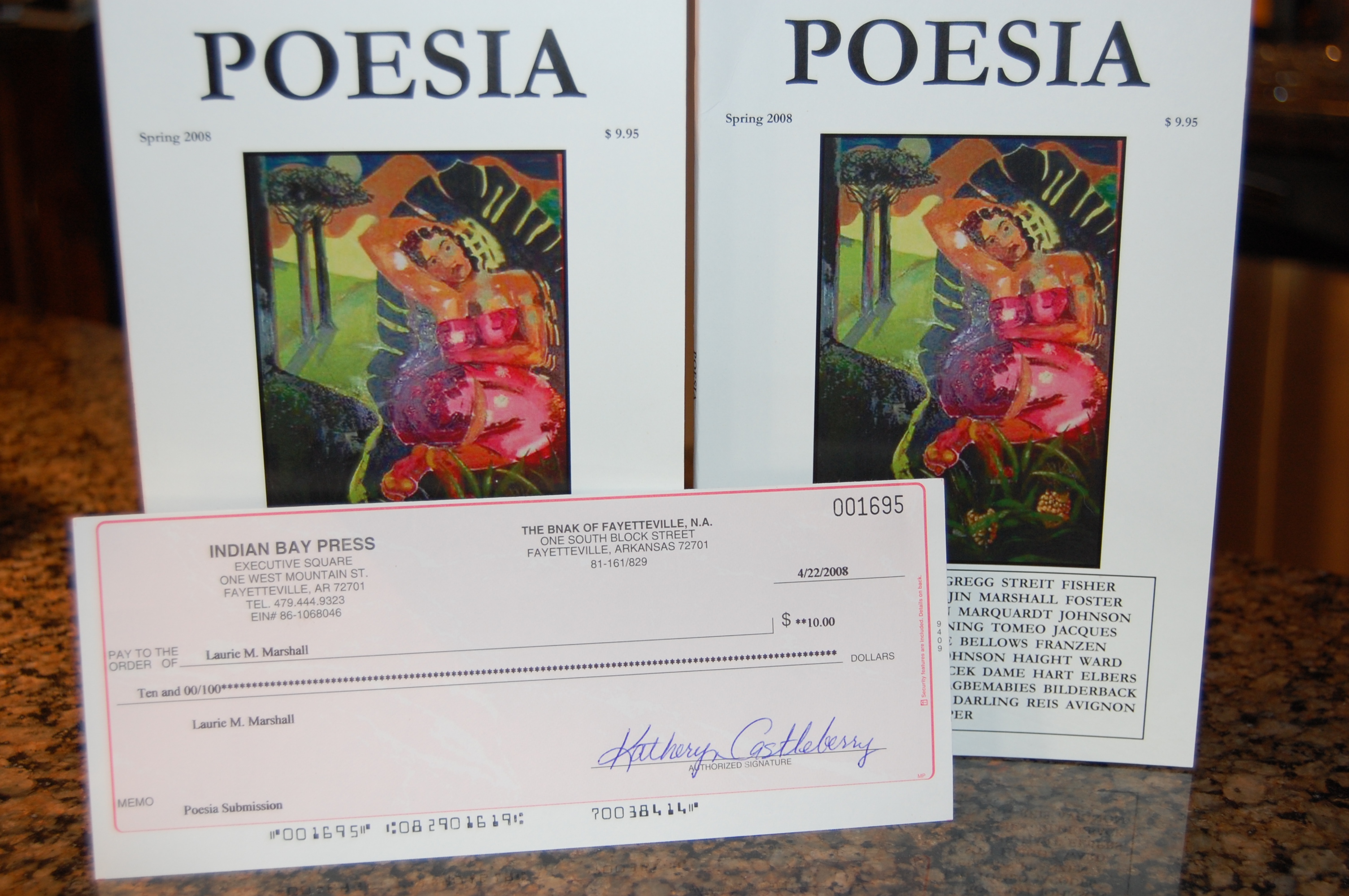 You rock, you rock, you rock!!! Anybody who sniffs at a $10 check doesn’t know how freakin hard it is to get into a poetry journal. You are my hero!