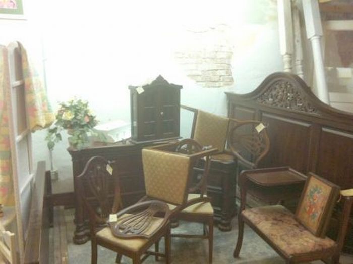 Suzy used to be a vendor in the Waiting List place and included a lot of detail in the vendor contract – even down to the statement saying that we are not allowed to decorate with feather boas. I think we’ll be able to mind that one fairly easily. I also think it will be easy to stand out. There was lots of shabby chic, and some repurposing going on, and vintage kitchenware, but no industrial, not much wire and metal… not many painted signs or lampshades and certainly no vintage linens turned tote bags and home decor.
